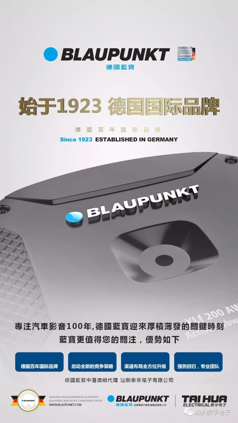 德國藍寶(BLAUPUNKT)或許您還不熟悉,但在汽車音響國際中,已是赫赫有名。在2016年它即以實力甄選,在約250個國際品牌幸運入選“明星品牌”榜首,以德國百年品牌入選名單中。德國藍寶(BLAUPUNKT)以高雅、簡約的設(shè)計卓越榮獲全球眾多發(fā)燒友的喜愛,