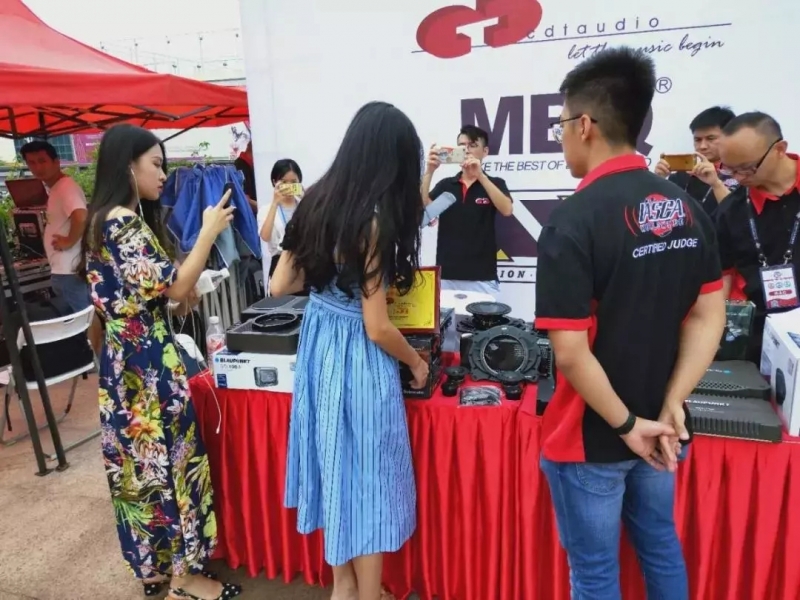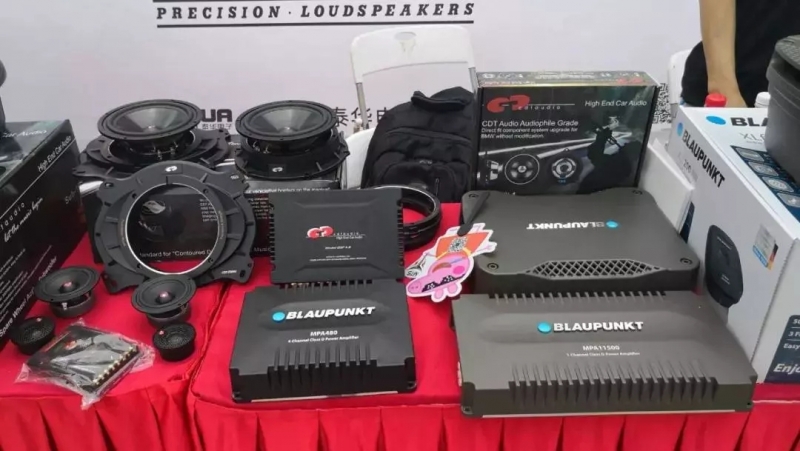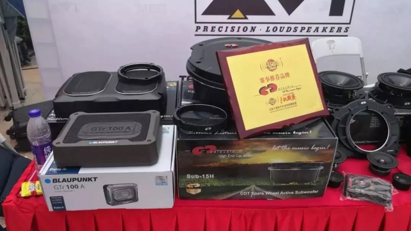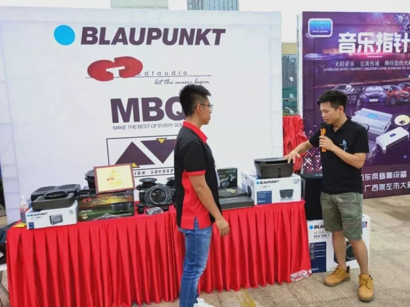 吳總在現(xiàn)場(chǎng)為大家介紹了 泰華電子的四大品牌: 【MBQ】【德國(guó)藍(lán)寶 BLAUPUNKT】【美國(guó)CDT Audio】以及【加拿大AVI】 ,并詳細(xì)地闡述了德國(guó)藍(lán)寶這一品牌的特色:德國(guó)工藝,發(fā)聲效果好。且現(xiàn)場(chǎng)舞臺(tái)的旁邊擁有其品牌產(chǎn)品的展示,最后也預(yù)祝了賽事能取得圓滿的成功。