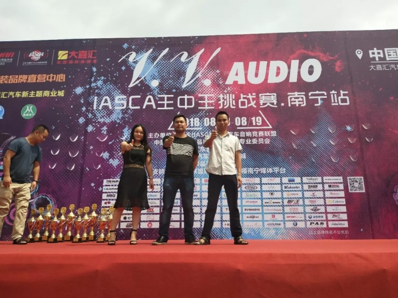 艾斯卡(IASCA)裁判-澎湃之音汽車音響-官奇生為榮獲專業(yè)改裝A組的冠軍:詩琴音響-日產(chǎn)騏達(dá)、亞軍:信宜樂道-長安CS35、季軍:音樂指針車隊-大新車空間-北汽威旺的參賽車主頒發(fā)獎杯,為獲獎車主點贊。