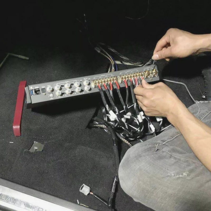 為了保證聲場(chǎng)喇叭的功率輸出穩(wěn)定,改裝技師為汽車音響系統(tǒng)添加了藍(lán)寶DSP MP 68A,同時(shí)它還自帶DSP數(shù)字音頻處理。安裝好之后,改裝師傅開始調(diào)音,并全方面檢查車內(nèi)的安裝情況。經(jīng)過(guò)改裝師傅的精心調(diào)試,音質(zhì)有了很大的提升。