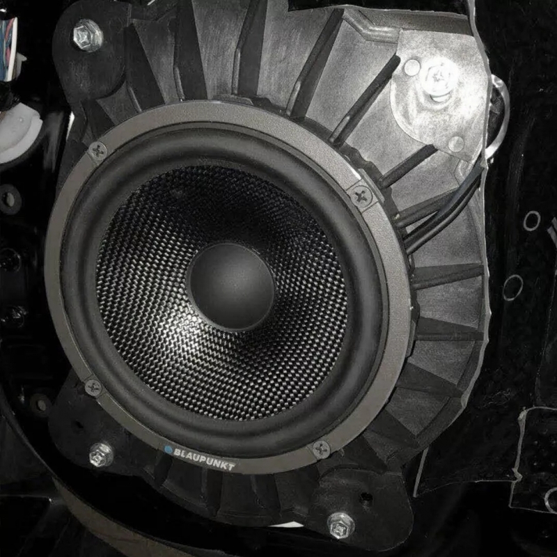 接著,改裝師傅將前聲場(chǎng)的喇叭換成藍(lán)寶兩分頻套裝喇叭 MPS 1662 C30,再搭配藍(lán)寶中低音喇叭MPM 1351M,組成三分頻,使聲音的層次分明 ,中音醇厚,低音飽滿。