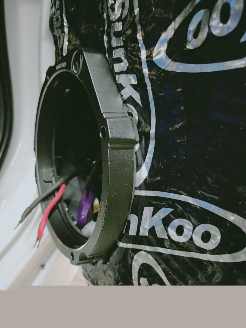 首先,在車門隔板上安裝隔音,安裝隔音之后再安裝專車專用的喇叭墊圈。