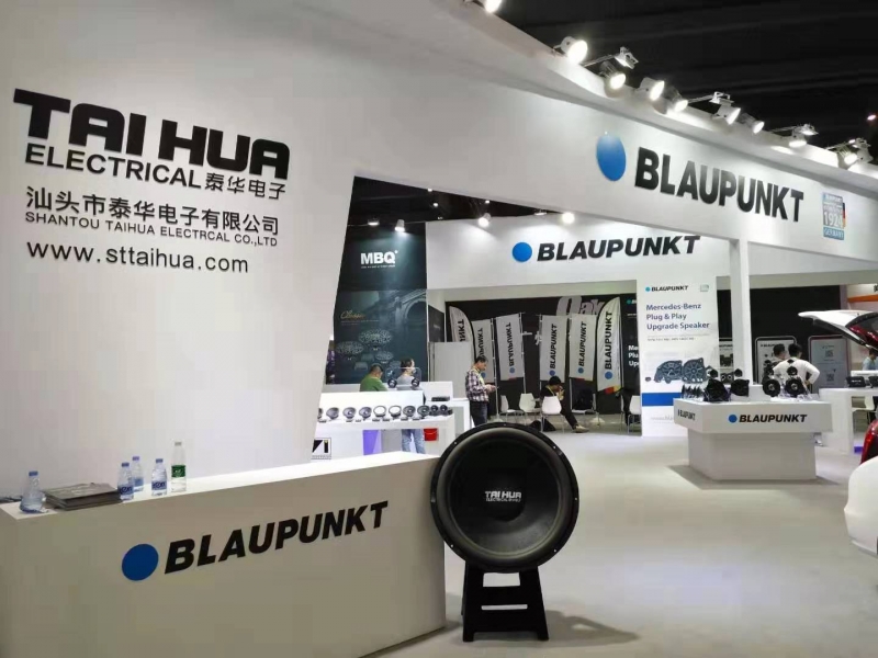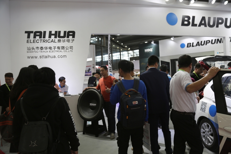 吸引眼球的不止是產(chǎn)品、樣品車與展區(qū)布局,還有汕頭市泰華電子有限公司為這次展會自制的32寸大喇叭,吸引著買家們的拍照與合影。