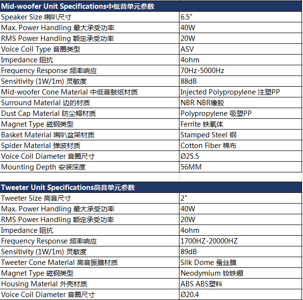 MBQ DW-ML-1651 6.5寸兩分頻套裝揚聲器