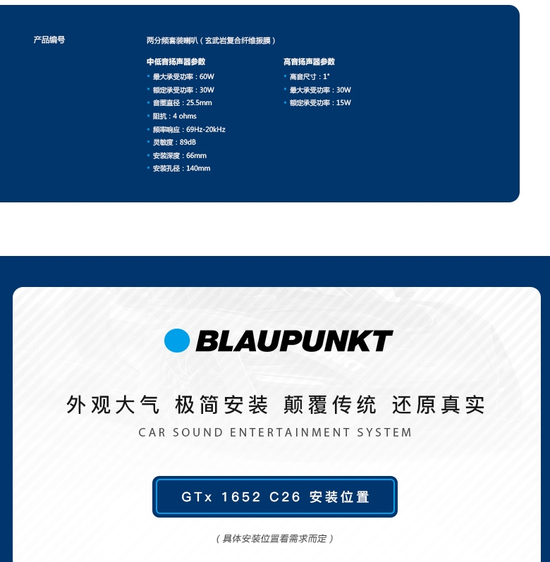 德國(藍(lán)寶BLAUPUNKT)GTx 1652 C26 套裝喇叭