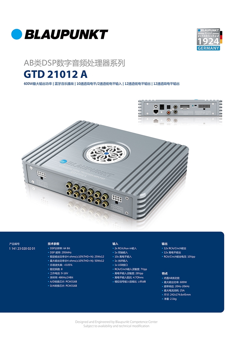 德國(guó)藍(lán)寶(BLAUPUNKT)大功率高清12路DSP功放 GTD 21012 A