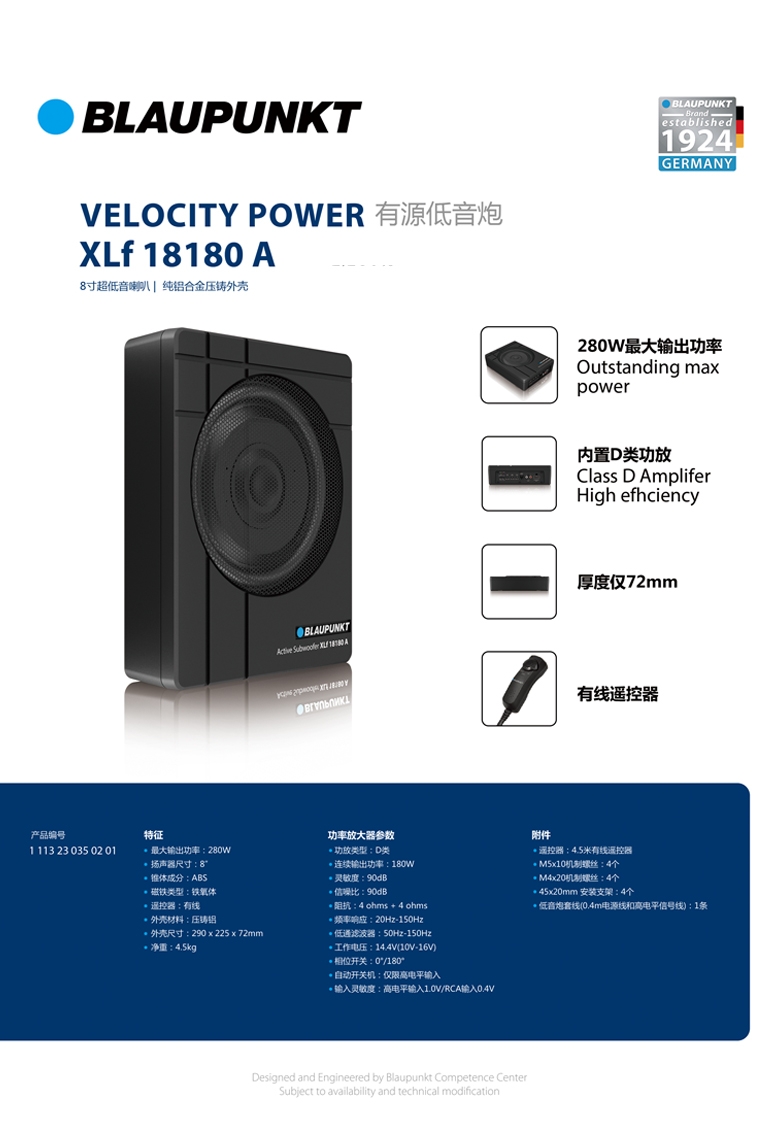 德國(guó)(藍(lán)寶BLAUPUNKT)有源低音炮 XLf 18180A